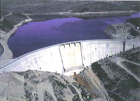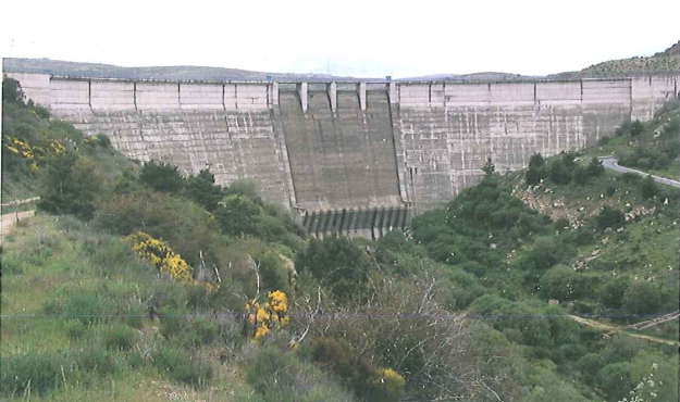 La presa fue construida en el año 1997 y presenta una altura sobre cimientos de casi 66 metros, una coronación de 340 m de longitud y 6 m de ancho.