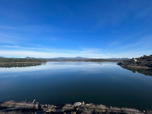 Agua embalsada en el Embalse de Rivera de Gata