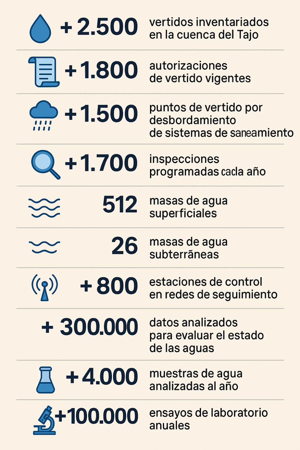 La Confederación Hidrográfica del Tajo trabaja para proteger y mejorar el estado de las aguas superficiales y subterráneas de la cuenca, sometidas a diversas presiones que pueden afectar a su calidad, como los vertidos de aguas residuales urbanas e industriales, o la actividad agrícola y ganadera.