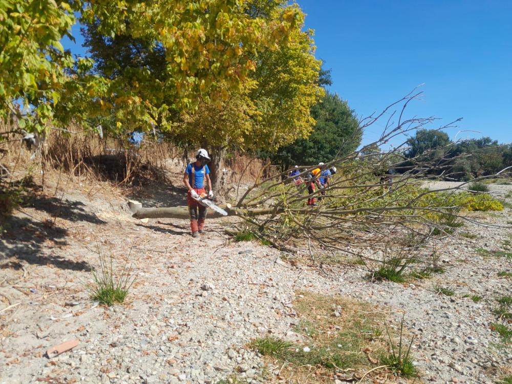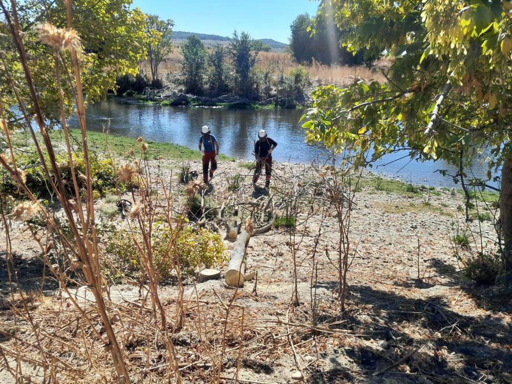 Actuación RM02: la problemática comentada en la actuación anterior (RM01) en la margen derecha viene acompañada de una deposición de sedimentos en la margen izquierda. El objetivo es recuperar la sección original del encauzamiento y optimizar la capacidad de desagüe en este tramo de 80 metros del río Manzanares. Se propone un tratamiento selvícola sobre la vegetación que se ha instalado sobre la playa de sedimentos y que está favoreciendo la fijación y compactación, para posteriormente realizar un laboreo para descompactar los sedimentos de forma que posteriormente puedan movilizarse por la acción del caudal circulante por el río Manzanares.