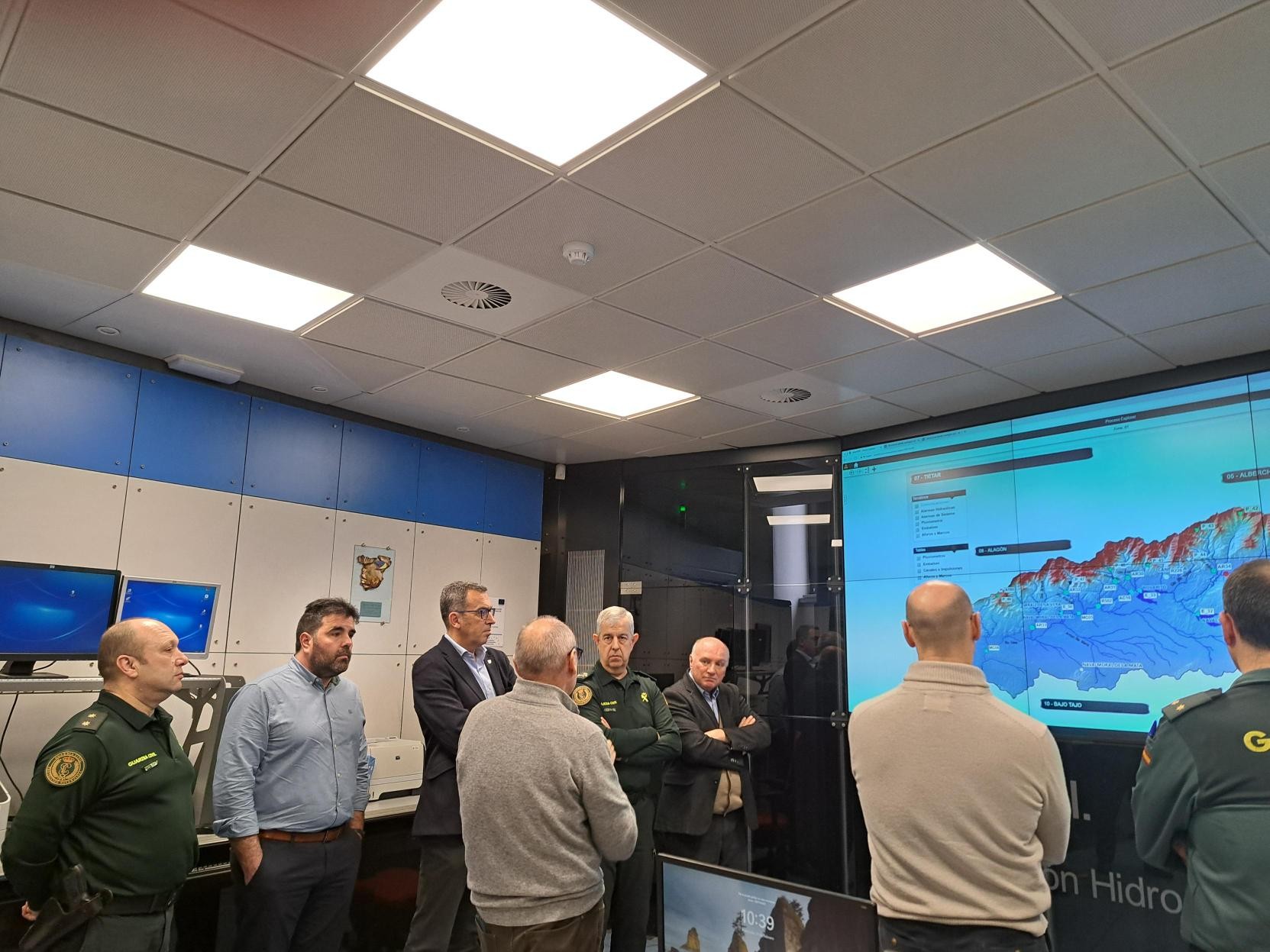La visita de la delegación del SEPRONA al centro de control del Sistema Automático de Información Hidrológica (SAIH) ha permitido a los mandos del SEPRONA profundizar en la capacidad de anticipación ante episodios de avenidas e inundaciones, así como en la gestión de estas.