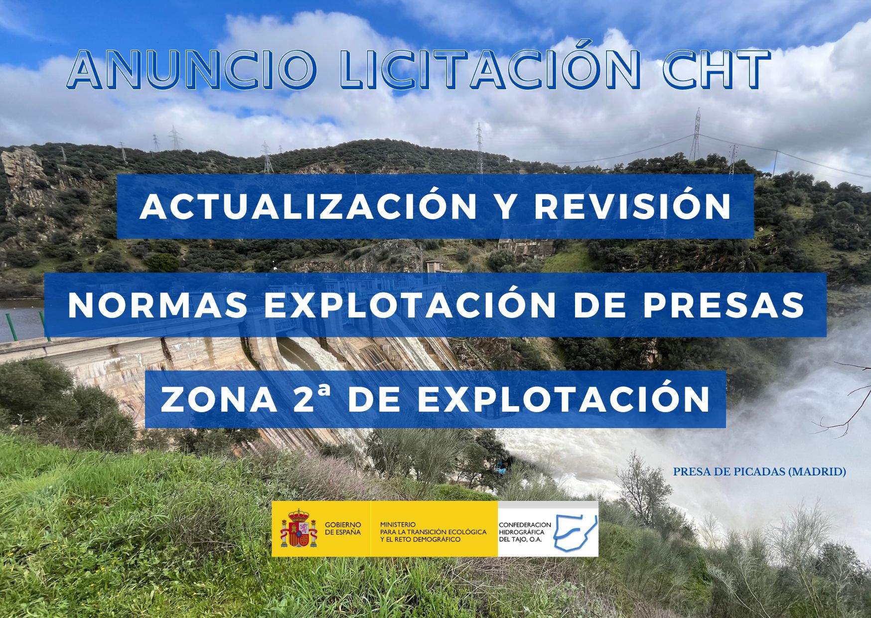 Anuncio licitación del Pliego de asistencia técnica para la actualización y revisión de las normas de explotación de las presas de la zona 2ª de explotación de la Confederación Hidrográfica del Tajo (Ávila, Madrid, Toledo y Cáceres) por un valor estimado de 492.795,90 euros y una duración de 20 meses.